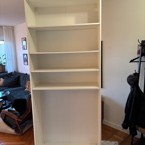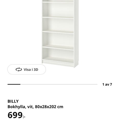 Tre stycken vita Billy bokhyllor 202 x 80 cm. En extra överdel medföljer. 1000 kr för det hela.