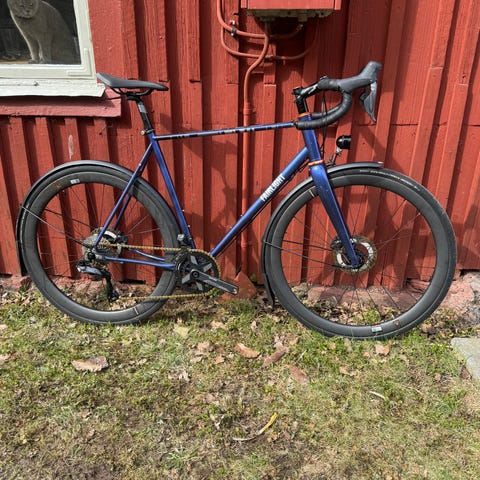 Cykeln har kolfibergaffel och lätt aluminiumram, vilket ger en bra kombination av komfort och styvhet, perfekt till Vätternrundan.