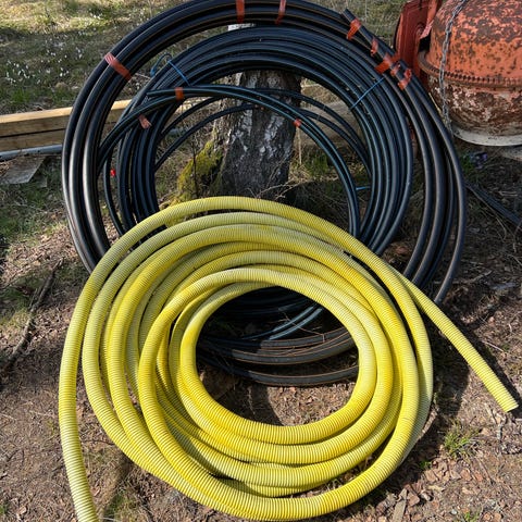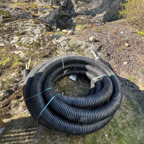 Svart dräneringslang 10 m x 90mm diameter för tex trädgårdsprojekt eller andra byggprojekt. Finns att hämta i Nacka Strand.