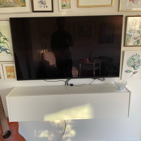 Har tagit bort halva bakstycket för att kunna komma åt eluttag. Även sågat liten skåra för att få fram elkabel från skåpet till TV. Se bilder för detta.