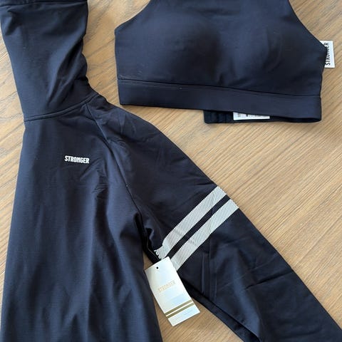 Stadium träningsbyxor för dam i storlek S. Byxorna är gråmelerade med mörka partier upptill i midjan. Materialet består av 48 % nylon, 44 % polyester och 8 % elastan, vilket ger ett stretchigt och följsamt tyg som passar för träning och annan fysisk aktivitet. Lång benlängd och bred resår i midjan ger en kroppsnära passform. Tvättråd enligt etikett: maskintvätt 40 °C, tvättas med liknande färger och utan sköljmedel.