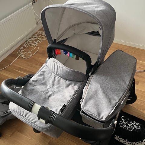 Säljer en Bugaboo Donkey 2 i bra skick. Ingår en liggdel och två sittdelar. Tillbehör: en mugghållare, två sommar suffletter (rosa och blå), en ståbräda och ett regnskydd, ett sittunderlag, sidokorg, Observera att ena framhjulet inte går att låsa. Hund finns i hemmet, men allt tvättas innan!