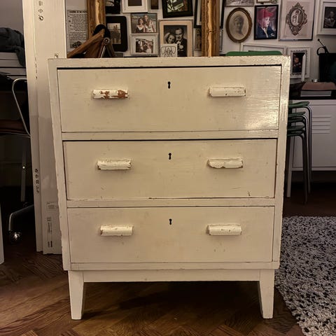 Byrå med tre lådor i grön färg. Slät ovansida som kan användas för förvaring eller dekoration. Lådorna har integrerade handtag i samma färg som byrån. Passar för förvaring i exempelvis sovrum, hall eller vardagsrum.