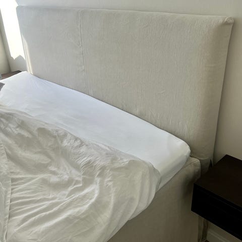 130cm hög med ben, det går även att fästa i sängen men det med kommer ej skruvar till det