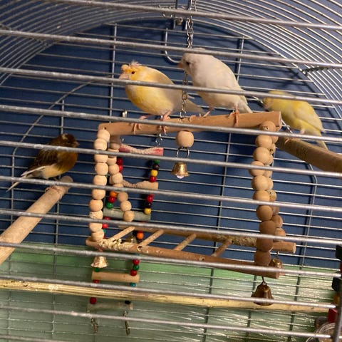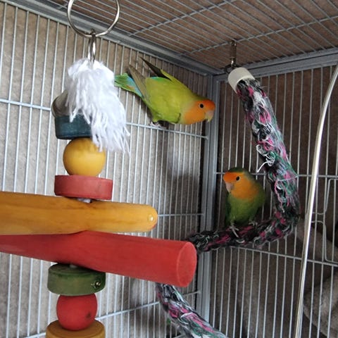 Säljer 2 fantastiska nyfikna dvärgpapegojor som älskar flyga fritt 😄 båda är honor den gula är 1,5 år gammal den blå/grå är 1 år gammal säljes endast tillsammans då jade trivs ihop bur ingår samt alla tillbehör