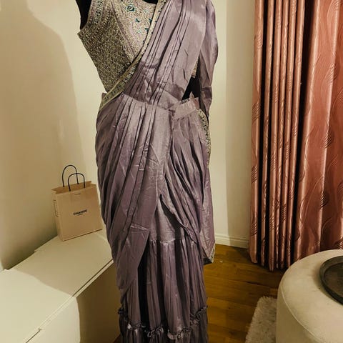 Väldigt fin och elegant pyjamas eller lounge outfit att bära hemma när man vill känna sig extra fin! Mörkröd med ljusblå mönster i form av blommor. Setet som är från Indiska består av blus och byxor. Stl. 40. Endast testad, säljes pga fel storlek. Hämtas i Uppsala alt. skickas mot frakt. Endast swish.