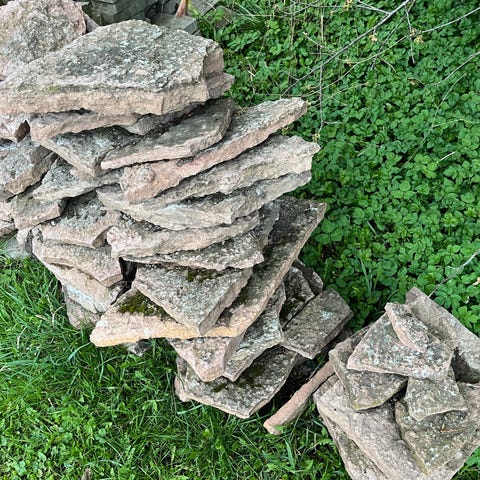 Natursten att dekorera trädgården med. Varierande storlekar i spannet 10-20cm. Täcker en yta av ca 20kvm. Finns i Åhus, lätt att komma till vid hämtning. Swish som betalning. 3kr/st