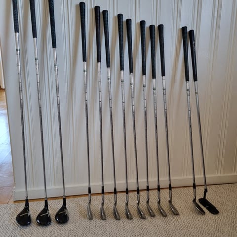 Träsjua, lob wedge och putter av olika märken