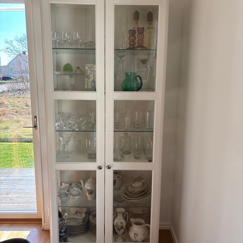 Vitrinskåp från ikea säljes. Dörrarna är lite sneda men en händig person kan säkert fixa dom raka! Finns i Karlstad