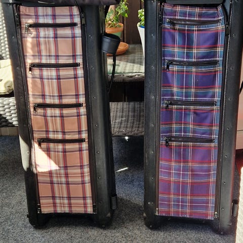 Sparsamt använd och har till största del stått orörd i källarförrådet. Det vita materialet är på vissa ställen aningen gulblekt men i övrigt är bagen fri från skador och slitage. Den är i riktigt fint skick.