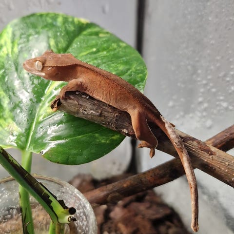 Vacker och trevlig kille som inte bangar att jaga syrsor. Kan äta cgd men föredrar att jaga. Bor idag bioaktivt och får fylla på gråsuggor med ojämna mellanrum då han stödjagar dom när han tycker att han inte får mat tillräckligt ofta.