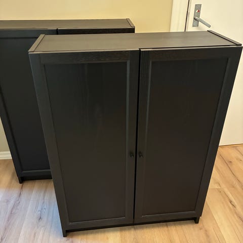 Två stycken Ivar skåp med skjutdörrar, målade svarta. Se bilder hur de är målade.
