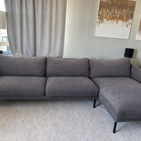Rostfärgad/orange manchester soffa. Bra kvalité och skön men synligt använd.