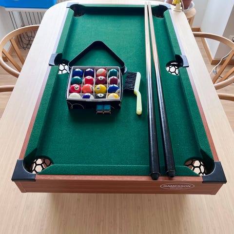 Biljardbord som köptes i mars, har packat upp det och spelat 10minuter men insåg att jag inte hade tillräckligt stor plats för det bordet.
