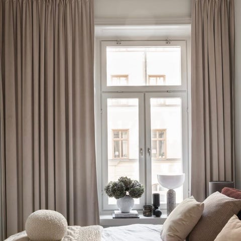 Luxaflex: 6 st plisserade hissgardiner av hög kvalitet i dubbelt tyg med svart insida.