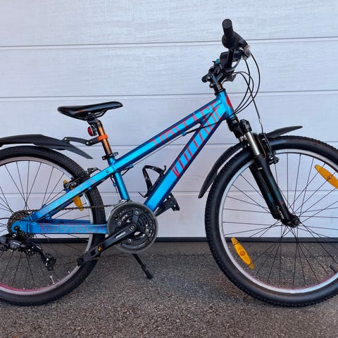 Nakamura MX 24 är en fantastisk barn mountainbike med 24-tums hjul. Den är utrustad med framgaffel med fjäder och 18 växlar. Detta är ett utmärkt val för barn upp till 14 år. Cykeln är mycket sparsamt använd. Ingår helt nya oanvända stänkskärmar.