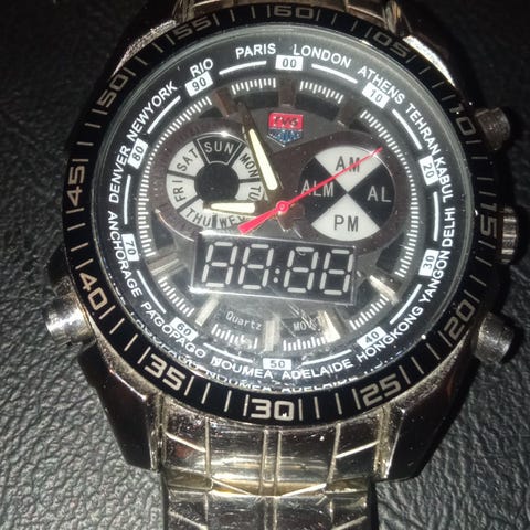 Fungerar, har en liten skada på urtavlan.