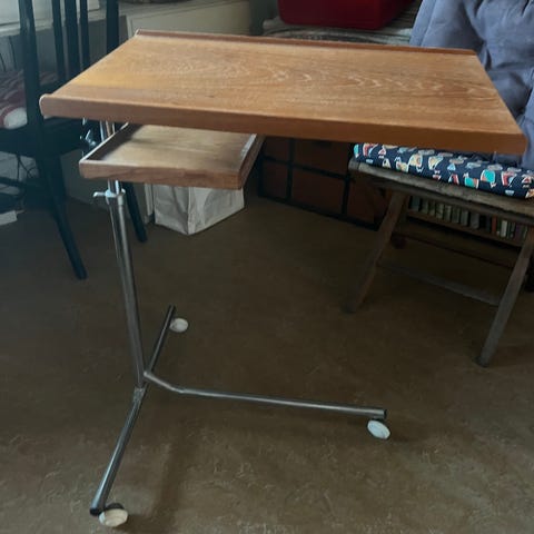 Den är i teak och har några små repor och ett litet vattenmärke på ovansidan, därav priset