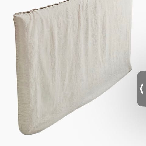Mille Notti sängkappa i vit färg. För 180-säng, 52 cm höjd från sängens kant. Sängkappan är utformad för att täcka sängens sidor och dölja sängben eller förvaring under sängen. Materialet är canvas-liknande, faller rakt längs med sidorna. Enda synliga slitaget jag hittar är en mycket liten repa i tyget högst upp på kappan (dvs närmast gaveln). Nytvättad och redo att användas! Nypris 2500kr.