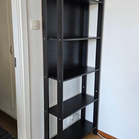 Liten och smidig svartbrun bokhylla från Ikea, använt skick men fortfarande fin :)