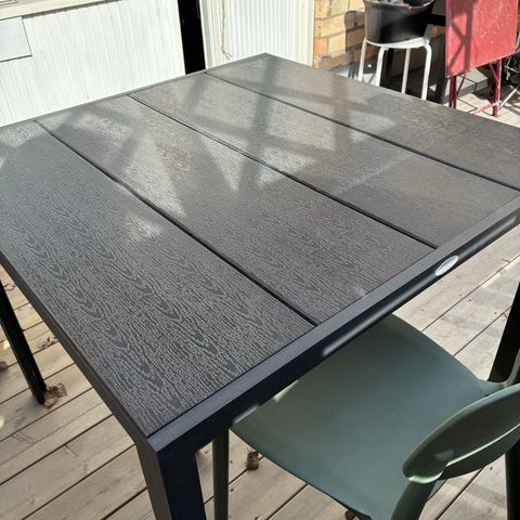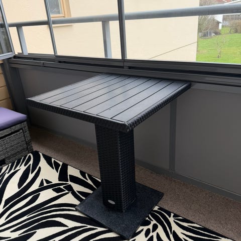 Fermob balkongbord i fyrkantig modell. Bordet är tillverkat i aluminium och har svart yta. Har ett centralt hål för parasoll. Fungerar för användning på balkong eller uteplats.
