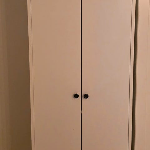 IKEA garderob i vit färg med två dörrar. Passar för förvaring av kläder. I fint använt skick, finns lite synliga slitage märken längts ner.