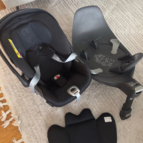 Endast använt till ett barn, cirka 1 år gammalt och 2025 i årsmodell. Aldrig krockat. Extra skydd för nyfödd är också med som man kan ta bort när bebisen växer, sitter enkelt ihop med bältet. Du kan även dra i en liten spak och få din bebis i liggande ställning.