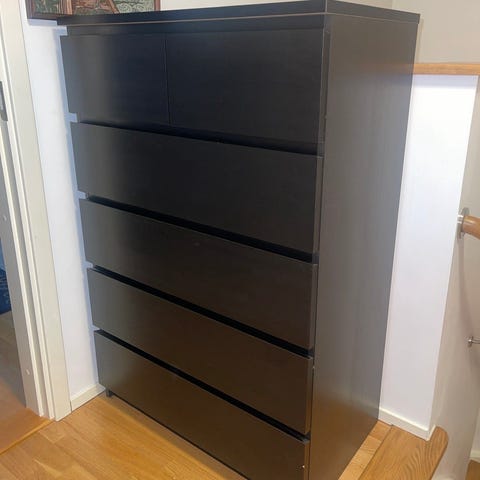 Byrån är begagnad men fungerar som den ska. Alla lådor glider bra och den är stabil. Mindre bruksspår kan förekomma, men inget som påverkar funktionen.