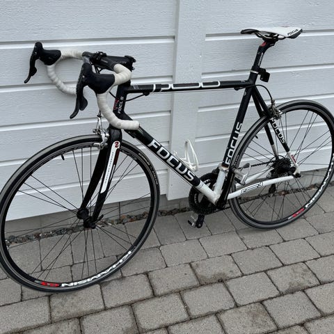Varsamt använd racercykel med kolfiberram. Har alltid förvarats inomhus.
