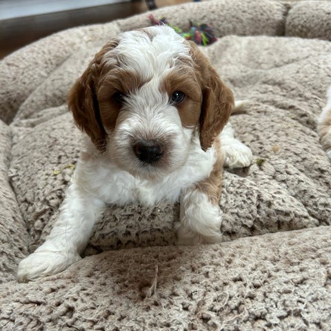 Detta är en populär kombination där mamma är en väldigt liten Mini Labradoodle och pappa är en Cavalier King Charles Spaniel.