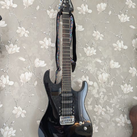 Helt ny i kartong. Genomgående hals, ebenholts greppbräda, Stephen exdended cutaway, Buzz Feiten intonerad, Seymour Duncan pick ups, Groover mekanik