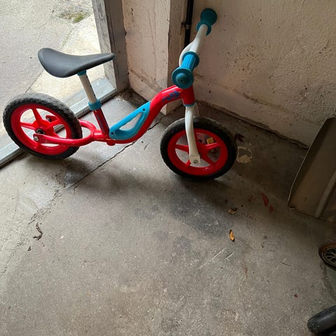 Springcykel för åldrarna 2-4 år. Köptes som reserv för att ha på landet men användes enbart ett fåtal tillfällen