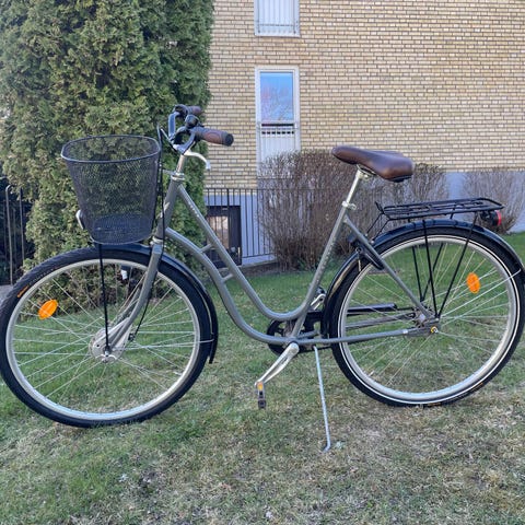 Damcykel Svalan Shopping 7 - 28” - 7 växlar Cykeln har lågt insteg, upprätt körställning och utrustning anpassad för stadskörning. Den är försedd med korg både fram och bak för transport av vardagsprylar. Fotbroms bak och handbroms fram, kedjeskydd och stänkskärmar, fotstöd samt reflexer. Passar för pendling och ärenden i stadsmiljö.