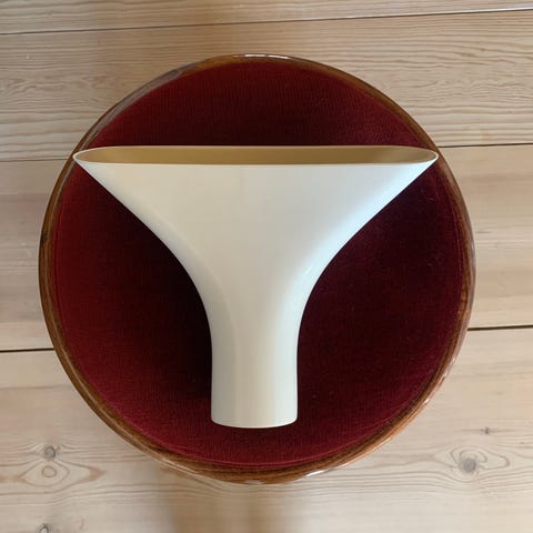 Gatto Piccolo bordslampa från italienska Flos kombinerar en vit metallbas med ett hartsmaterial som påminner om en kokong. Detta resulterar i ett varmt sken som framhäver lampans eleganta design. Formgiven av Achille och Pier Giacomo Castiglioni år 1960, är Piccolo dimbar och styrs enkelt via dimmern på kabeln. För bästa ljuseffekt rekommenderas att använda tillverkarens egen ljuskälla. Lampan finns även i en större variant, perfekt att kombinera för en harmonisk inredning.