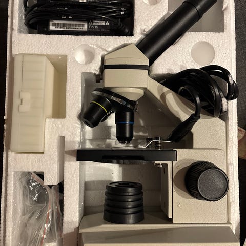 Utrustat med 4 objektiv (4x, 10x, 40x, 100x) (Japantillverkning).
