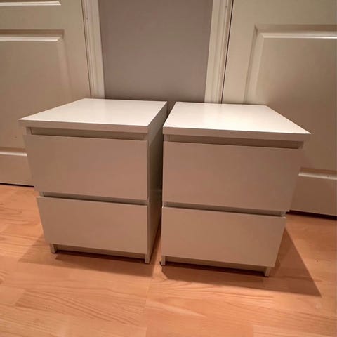 IKEA sängbord med två lådor i träfaner. Är använd en kortare tid, så i fint skick!