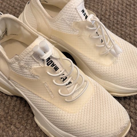 Steve Madden sneakers i storlek 38. Modellen är i svart färg med ovandel i textil/mesh och syntetdetaljer. Skorna har snörning med dragsko och dragflik bak för enklare påtagning. Yttersula i gummi med mönstrad undersida för grepp. Passar som vardagsskor eller lättare fritidsskor.