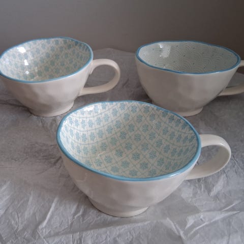 2 st handgjorda kaffekoppar med fat