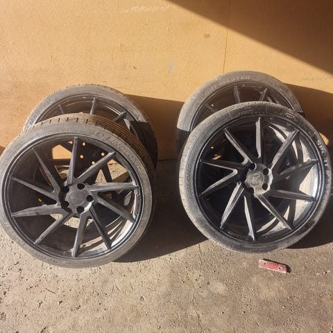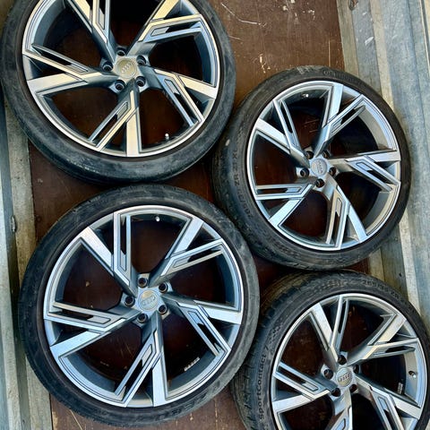 Satt på min gamla Audi A6. Däcken är slitna men fälgarna är i god skick.
