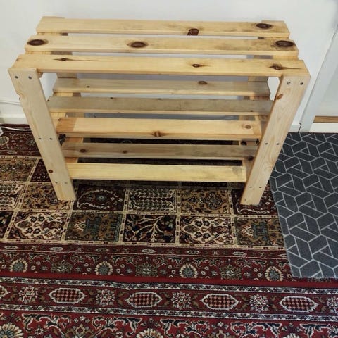 Skohylla i massivt trä.