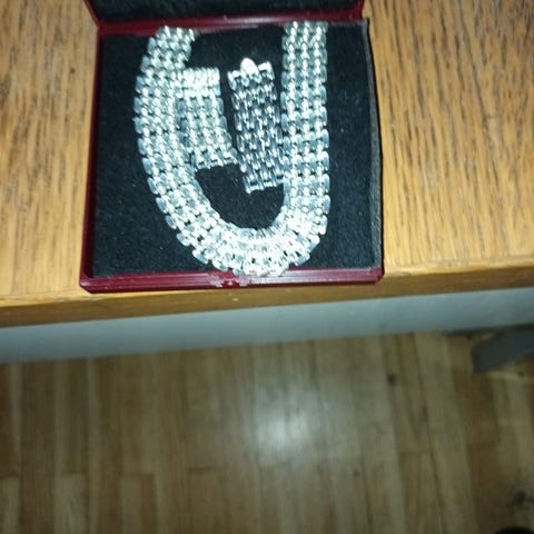 Zara smyckeset för kvinna med halsband och örhängen i metall med kristalldetaljer. Halsbandet har flera runda kristaller i olika storlekar. Örhängena är hängande med avlånga och runda kristaller. Setet är avsett som modesmycke och levereras i ask enligt bild. Endast avhämtning i Motala eller hemleverans till närområdet.