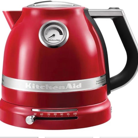 KitchenAid brödrost i röd färg. Modellen har plats för två brödskivor och är utrustad med flera rostningslägen och justerbar inställning för rostningsgrad. Utdragbar smulbricka underlättar rengöring. Passar för rostning av brödskivor och liknande bakverk i kök och hushållsmiljö.