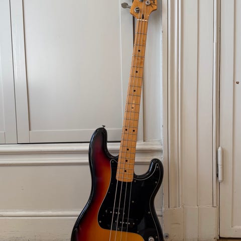 Halspickupen har någon innan mig bytt från en p till en jazzpickup. Urfräsningen är inte vacker men syns inte under plektrumskyddet. Oklart vilket fabrikat på pickupen men jag tycker basen låter väldigt trevligt.