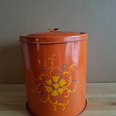 Blåmålad laggkärl med blomstermotiv och lock. Perfekt för förvaring. Allmoge 1900 tal i fint skick mått ca 21 cm hög bredd övre ca 18 cm i diameter nedre diameter ca 15 cm och djup ca 13 cm vikt ca 920 gram, i fint skick med fantastiska blomstermotiv och fin mörkblå färg se bilder för egen bedömning