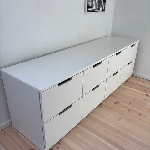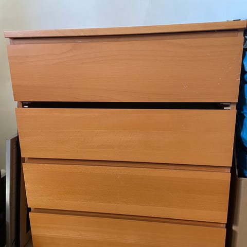En plastfilm har suttit på skivan i många år och börjar bli sliten. Några få märken på någon låda men inget som syns jätteväl.