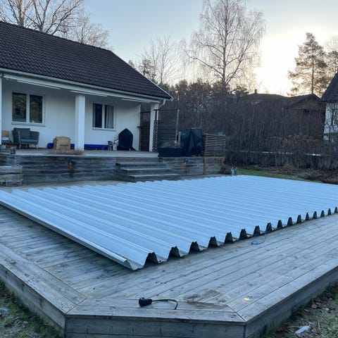Folkpool Rib cover för pool 4x7 samt vinterplåtar för 4x8. Nypris idag över 40k