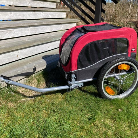 Trollkärran knappt använd, lättrullad, öppningsbar på kortsidorna och taket, fästet till cykel medföljer
