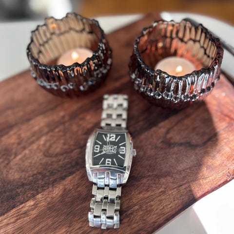 Jättefin klocka med tanke på åren. Nått litet märkens glaset som man kan se om man vinklar klockan i ett speciellt läge, men inget som stör.