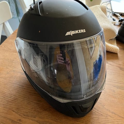 Shoei mc hjälm , mitt huvud ca 55 cm) med nedfällbart solskydd 1500kr