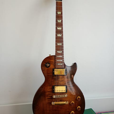 Ett fantastiskt fint exemplar tillverkad på den berömda Guildfabriken i Westerly, Rhode Island, USA, året innan nya ägaren Fender bestämde sig för lägga ner fabriken. Tänk kvalitet à la Gibson custom shop där det mesta fortfarande tillverkades för hand. Gitarren har minimalt slitage och spelar som en dröm. Gitarren är "chambered" så vikten är behaglig, samtidigt som det ger gitarren en semi-hollow känsla och ljud. Utrustad med Seymour Duncan Seth Lover vintage output humbuckers som låter ljuvligt. Grover stämskruvar. Guild original hardcase.